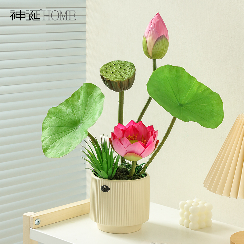 套装 饰品插花花艺摆件 荷花仿真花荷叶莲蓬假花摆设客厅绿植盆栽装