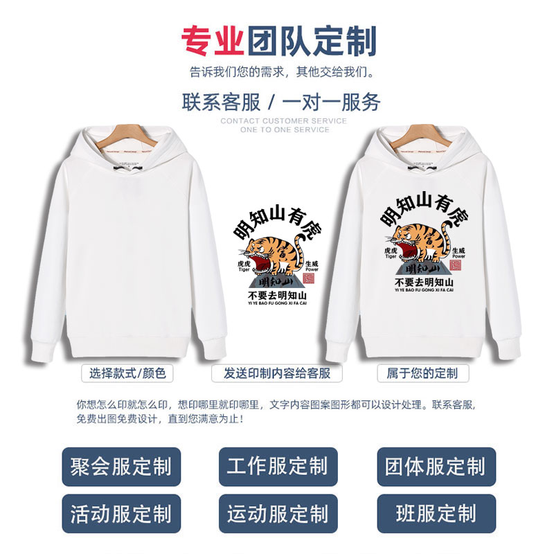白色连帽卫衣定制印logo工作服工装 加绒加厚班服自定义diy图案
