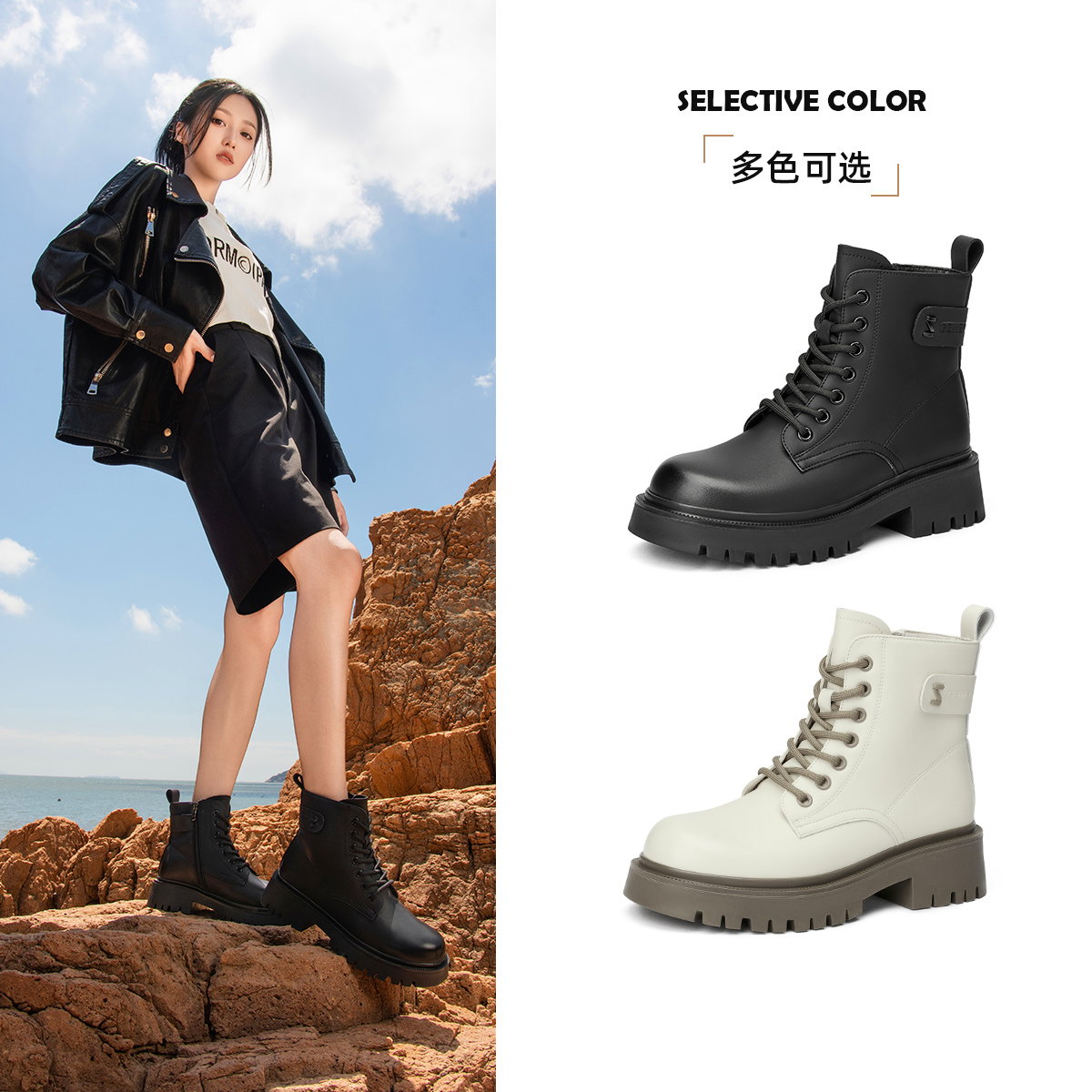 达芙妮黑色马丁靴女款 皮靴厚底炸街英伦风增高靴子女短靴 2025秋季