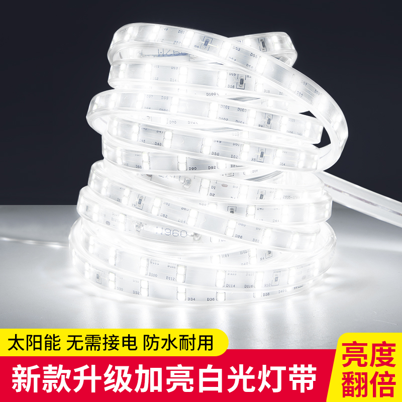 太阳能户外led白光灯带防水超亮庭院软灯条室外专用装 饰柔性灯带
