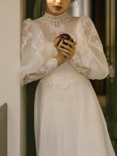 在逃公主长袖 新娘超仙森系复古迎宾轻纱结婚出门纱 婚纱2024新款