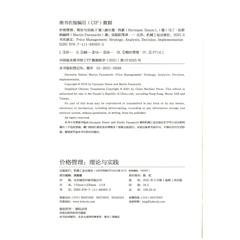马丁·法斯纳赫特著 赫尔曼·西蒙 吴振阳 洪家希等译管理学理论 社 价格管理:理论与实践 MBA机械工业出版 德