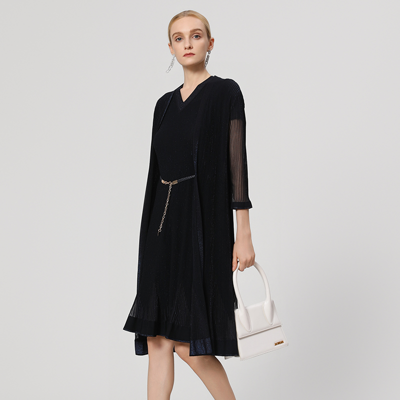 官方正品 阿丹娜春夏新款 中长气质女装 薄透罩衫 蓝色闪葱针织开衫