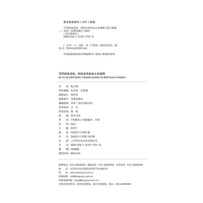 本土化阐释 社9787519777319 天下 法律出版 陈少青 法学新青年 刑民关系 违法性 可罚 2023新书 正版