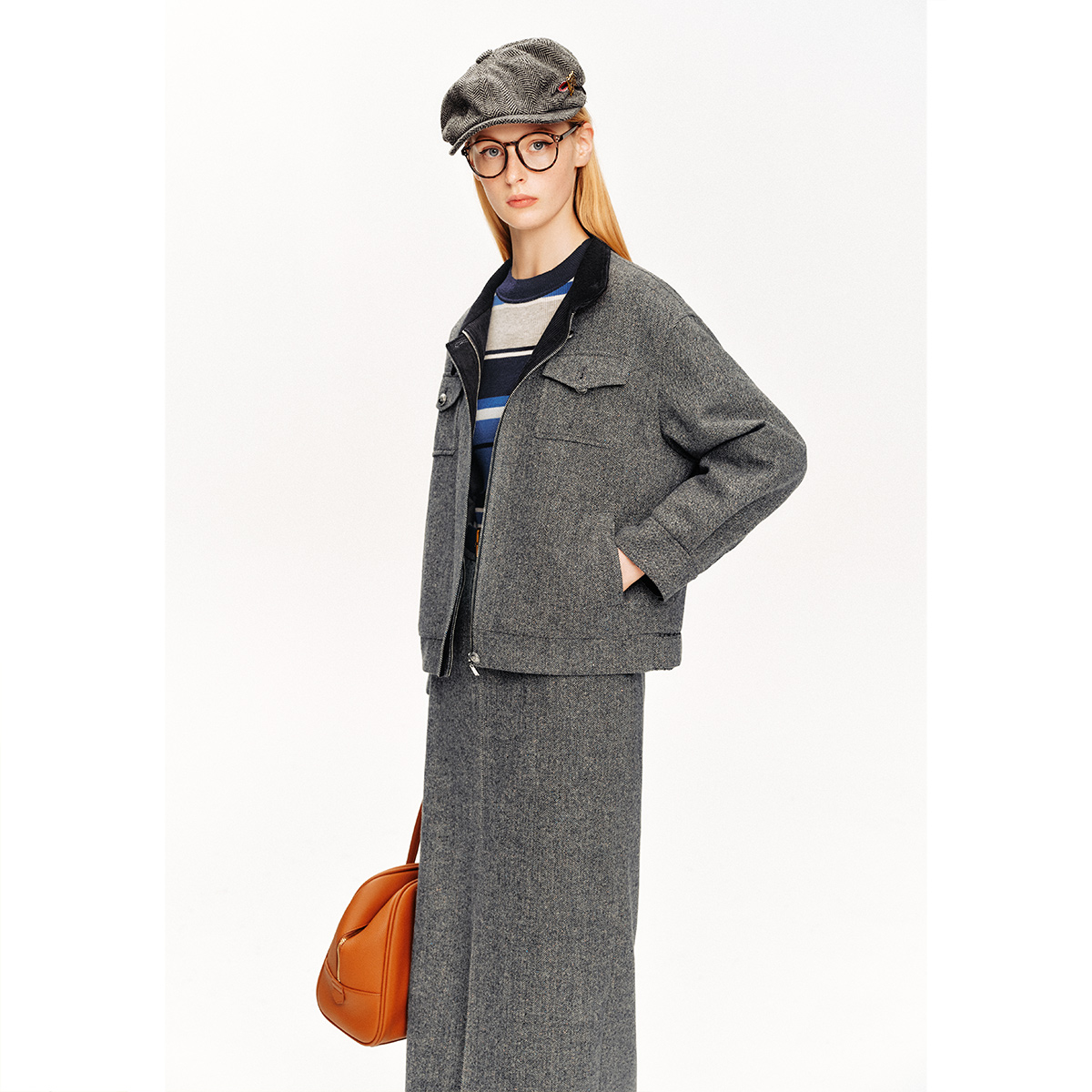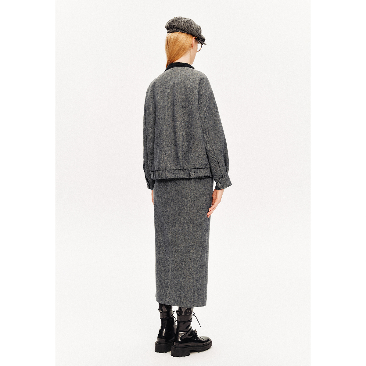 PSALTER诗篇彩点人字纹绢丝格雷系短外套冬款 丝毛混纺
