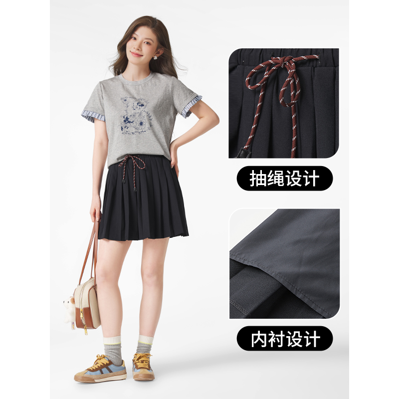 短款 学院风时尚 百褶裙子 简约休闲半身裙秋季 TeenieWeenie小熊女装