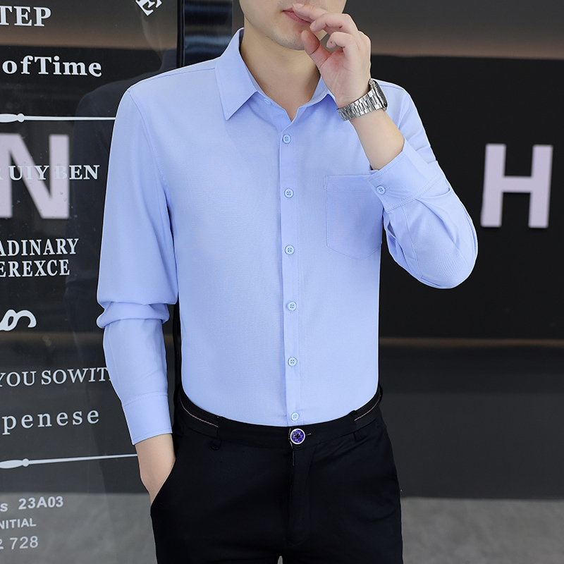 通勤正装 弹力80支长绒棉免烫男士 商务结婚衬衣 男长袖 红豆白衬衫