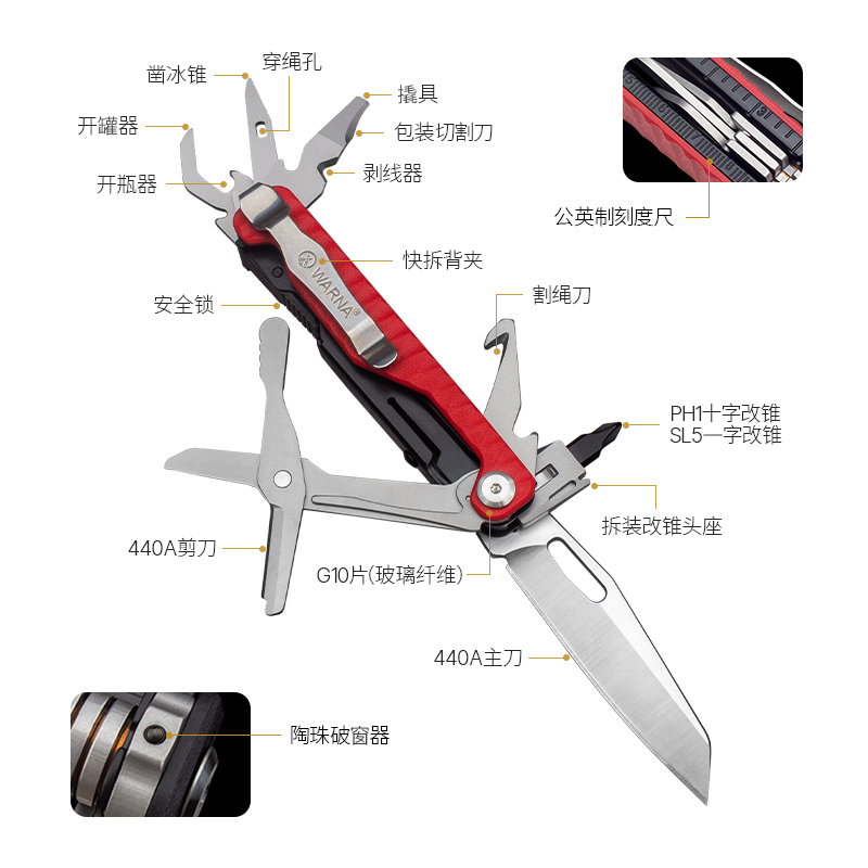华尔纳飞云多功能刀折叠组合工具户外露营便携应急剪刀车载破窗器