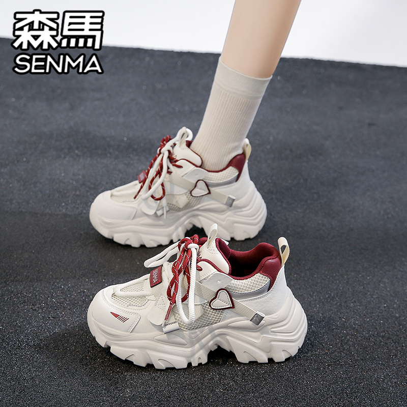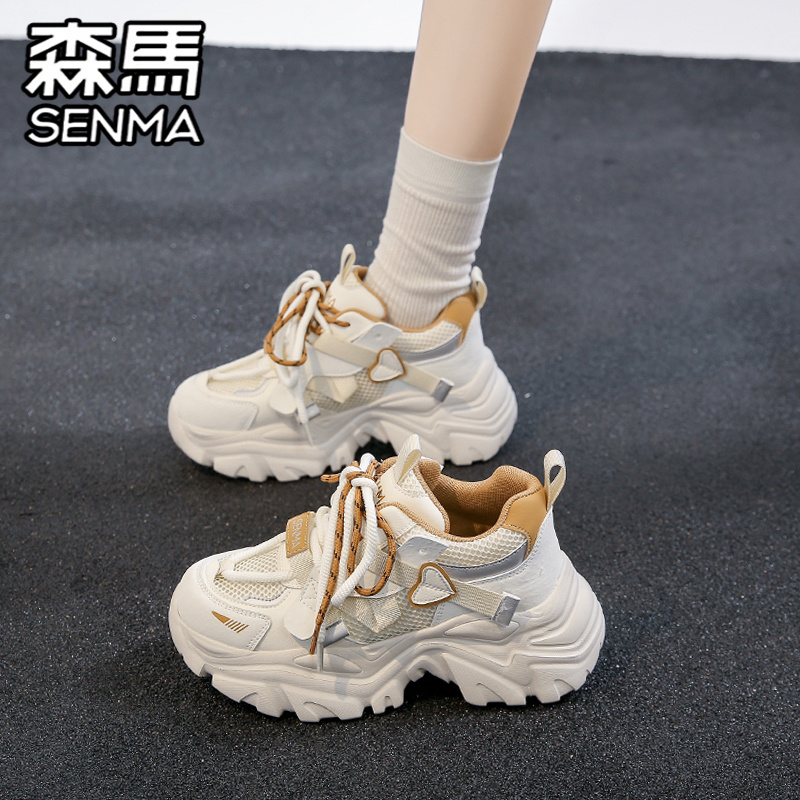 厚底增高网红老爹潮鞋 透气网面运动休闲跑步小白女款 秋季 森马女鞋