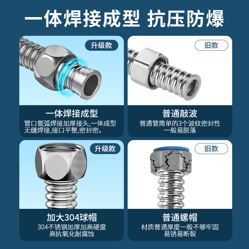 加厚4分304不锈钢波纹管家用燃气热水器冷热进水高压防爆金属软管