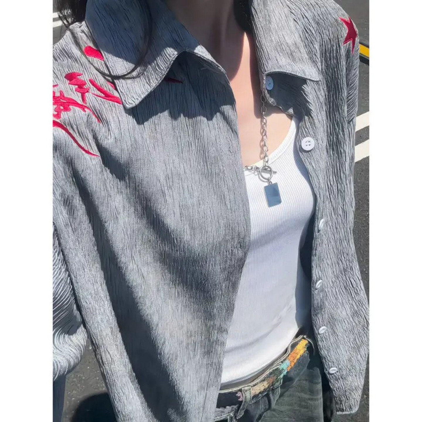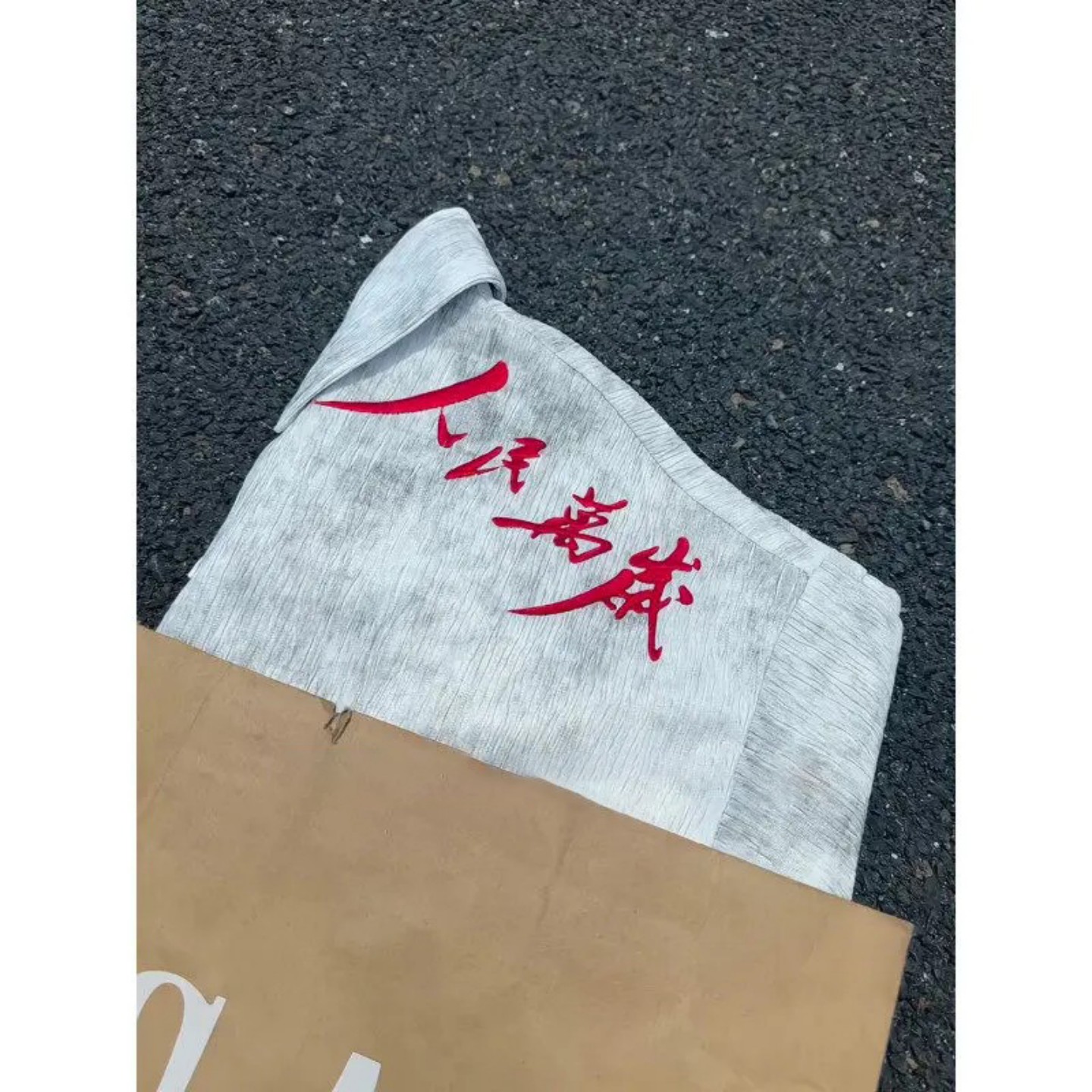 复古扎染情侣半袖 男夏美式 cleanfit外套 衬衫 人民万岁刺绣冰丝短袖