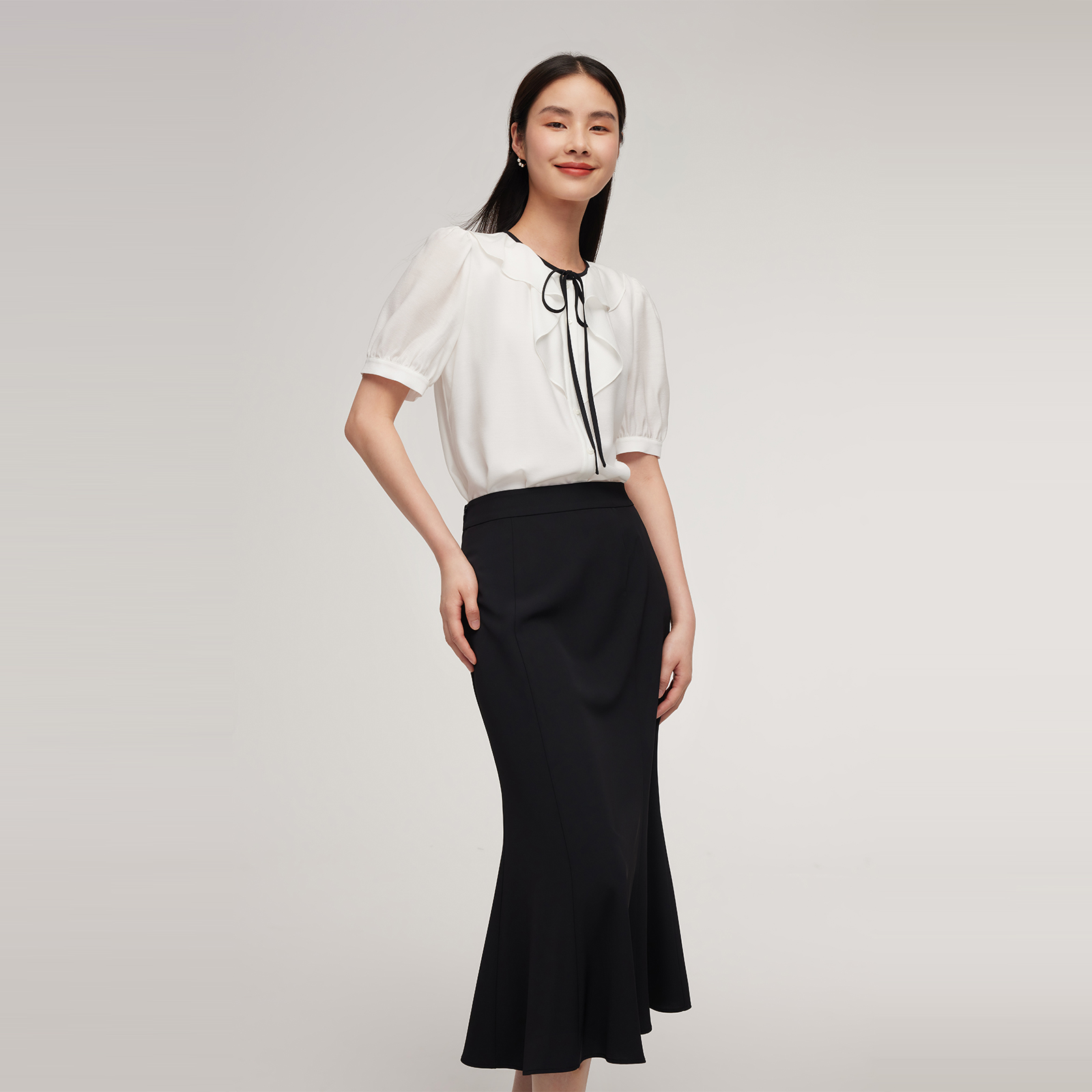 新品 鱼尾半裙 醋酸衬衫 上衣 1E8LAB0H0 套装 歌莉娅秋季