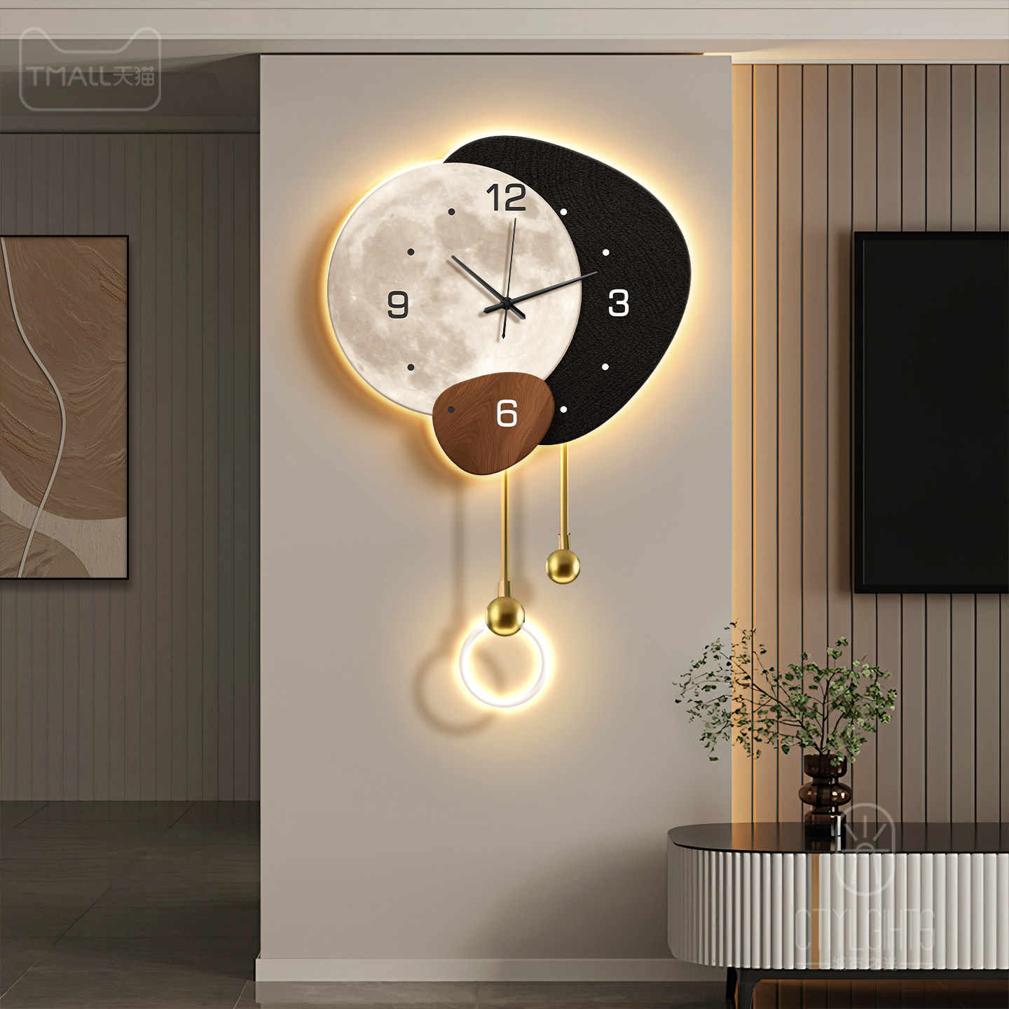 石来运转客厅挂钟中古风高级感万年历电子钟表格创意栅时钟壁灯