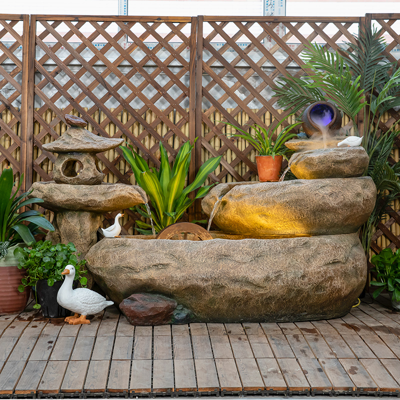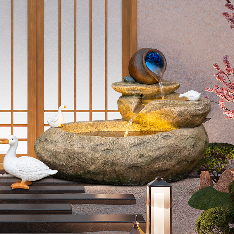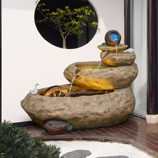 田园假山流水池落地摆件庭院喷泉风水轮鱼缸办公室招财循环水景观