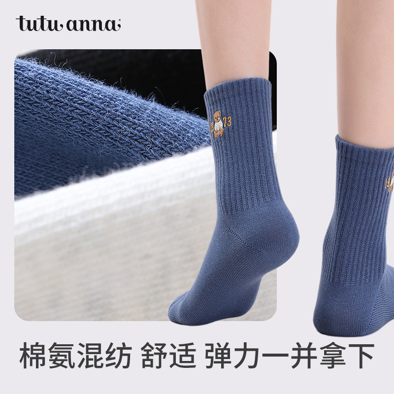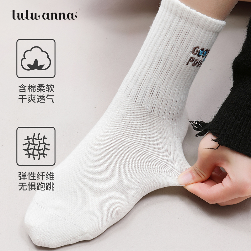 棉伙棉伴海藻袜舒适抗菌防臭男女商务运动纯色裸感中筒袜