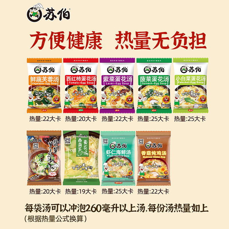 苏伯速食汤多口味蔬菜蛋花汤芙蓉紫菜汤冲泡即食虾皮汤包汤料包