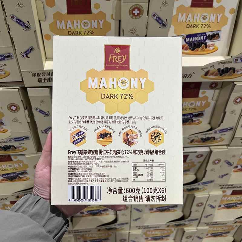 开市客代购 Frey飞瑞尔蜂蜜扁桃仁牛轧糖夹心72%黑巧克力制品600克