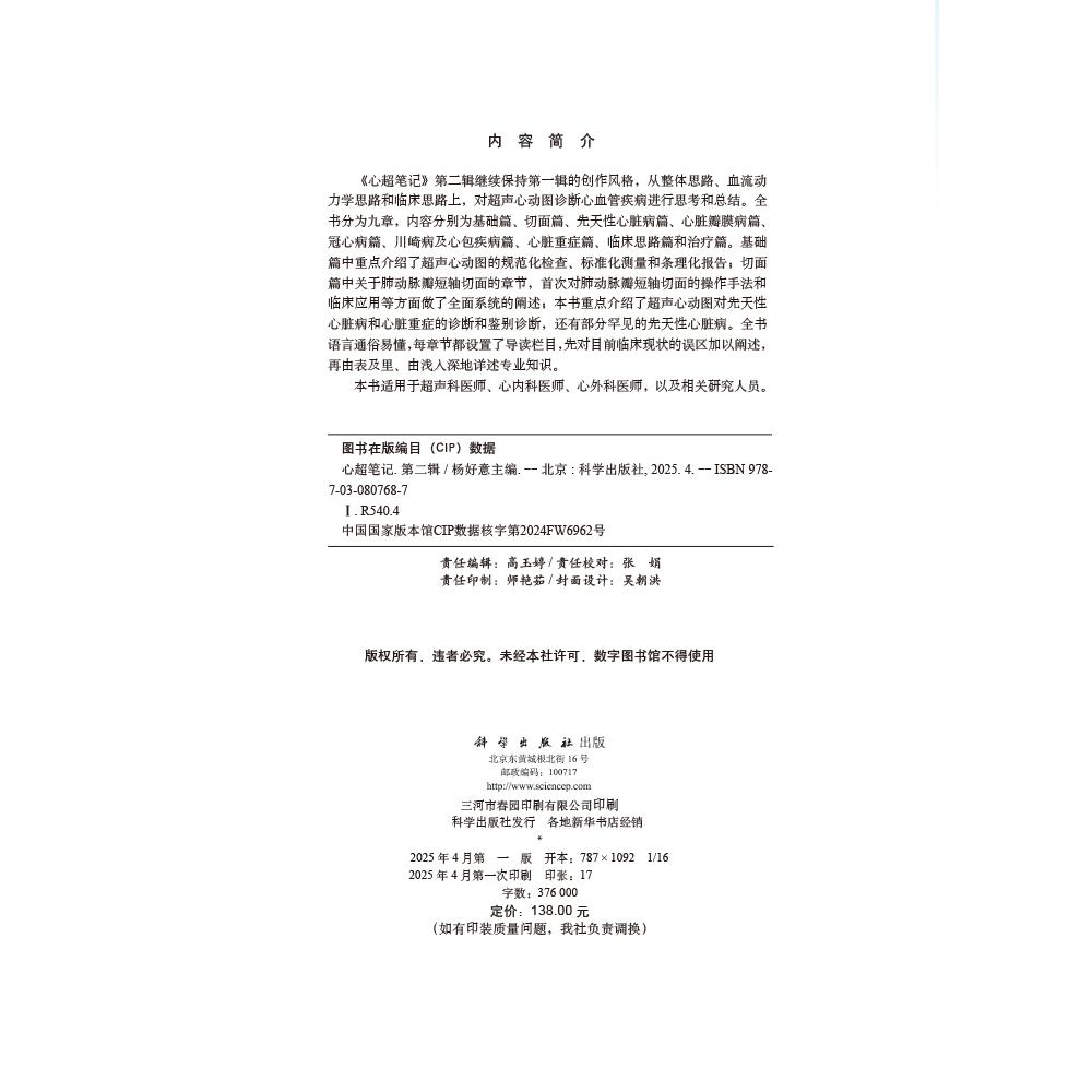 超声心动图诊断心血管疾病检查先天性心脏病重症鉴别诊断心脏超声医师心内外科临床参考书籍科学出版 杨好意 社 第二辑 心超笔记