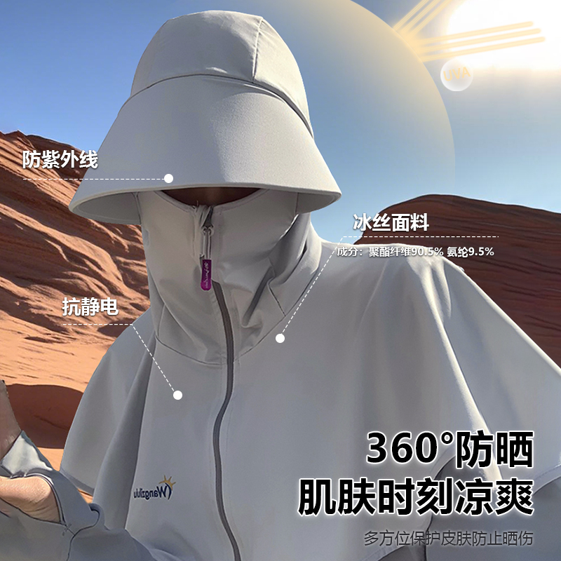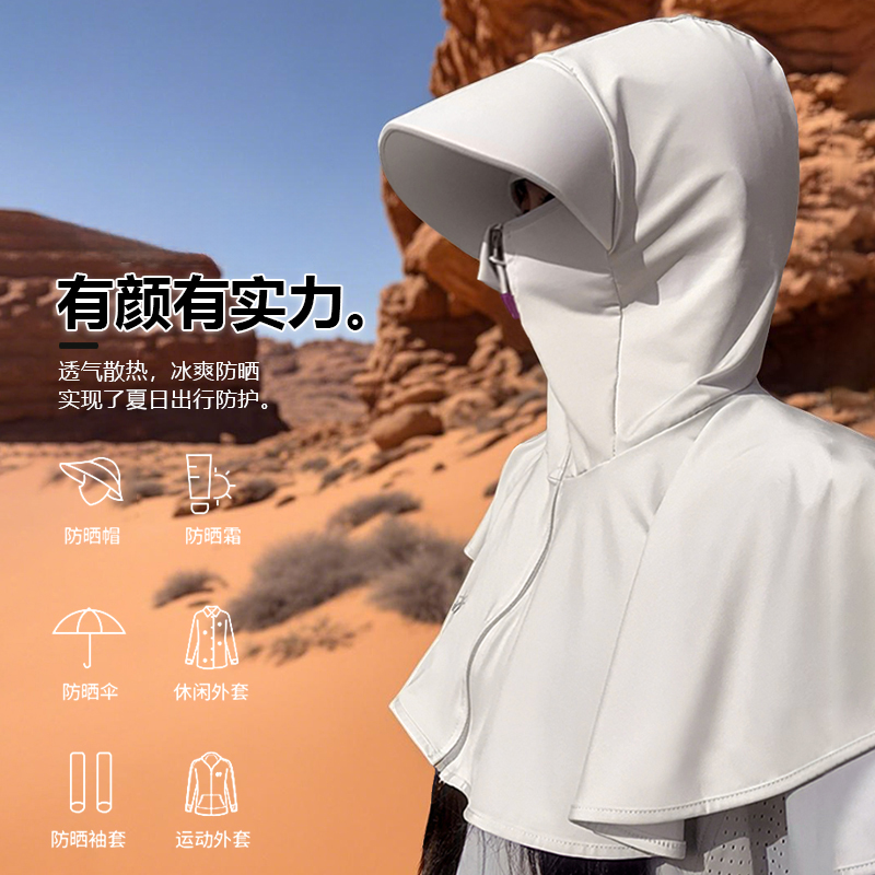 冰丝防晒面罩帽子一体全方位防晒帽女夏季 防紫外线全脸护颈遮阳帽
