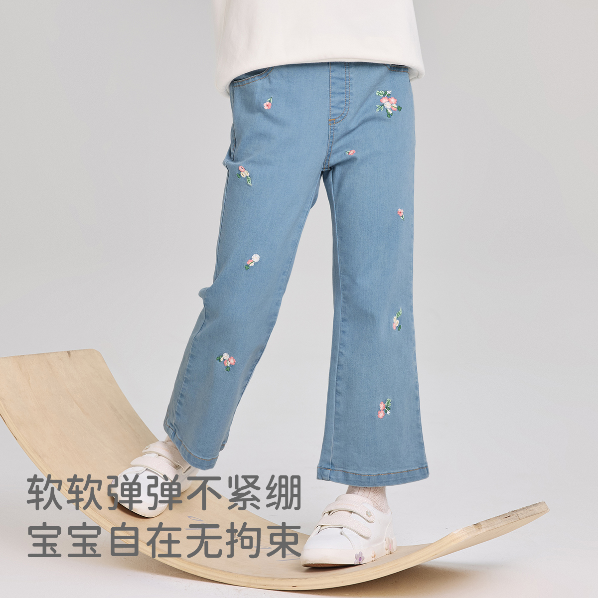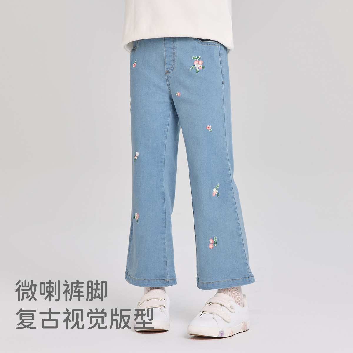 儿童复古喇叭裤 童装 子2025春装 女大童长裤 新款 戴维贝拉女童牛仔裤
