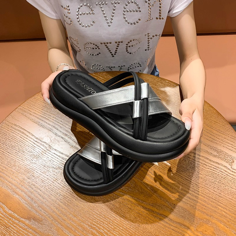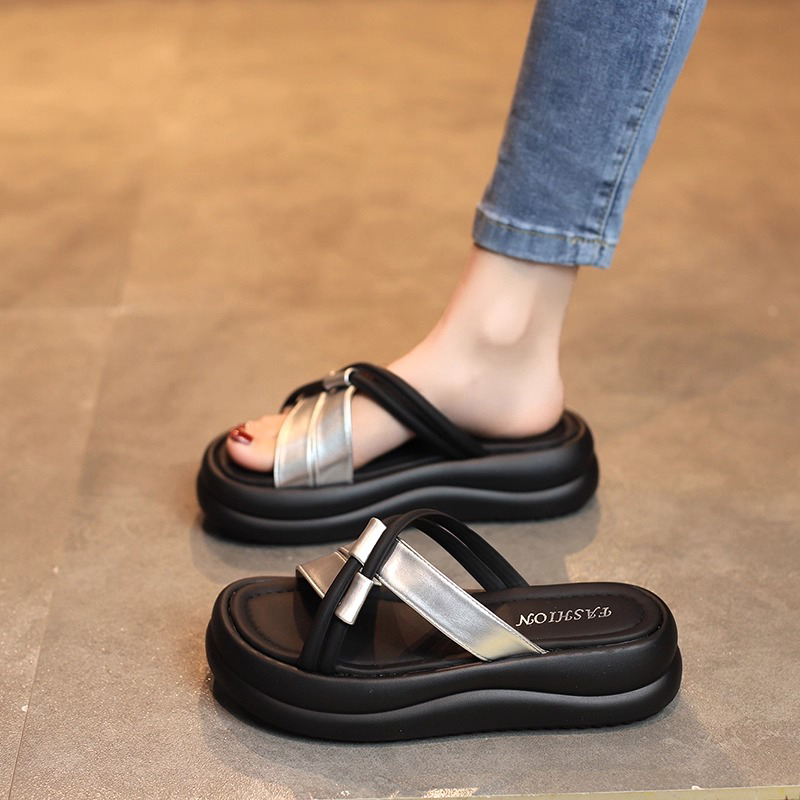 时尚 凉拖鞋 配裙子厚底沙滩凉鞋 外穿2025新款 女士孕妇一字拖 女夏季