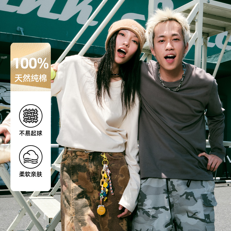 T恤男秋季 黑色美式 宽松大码 打底衫 复古内搭潮H 情侣装 回力纯棉长袖