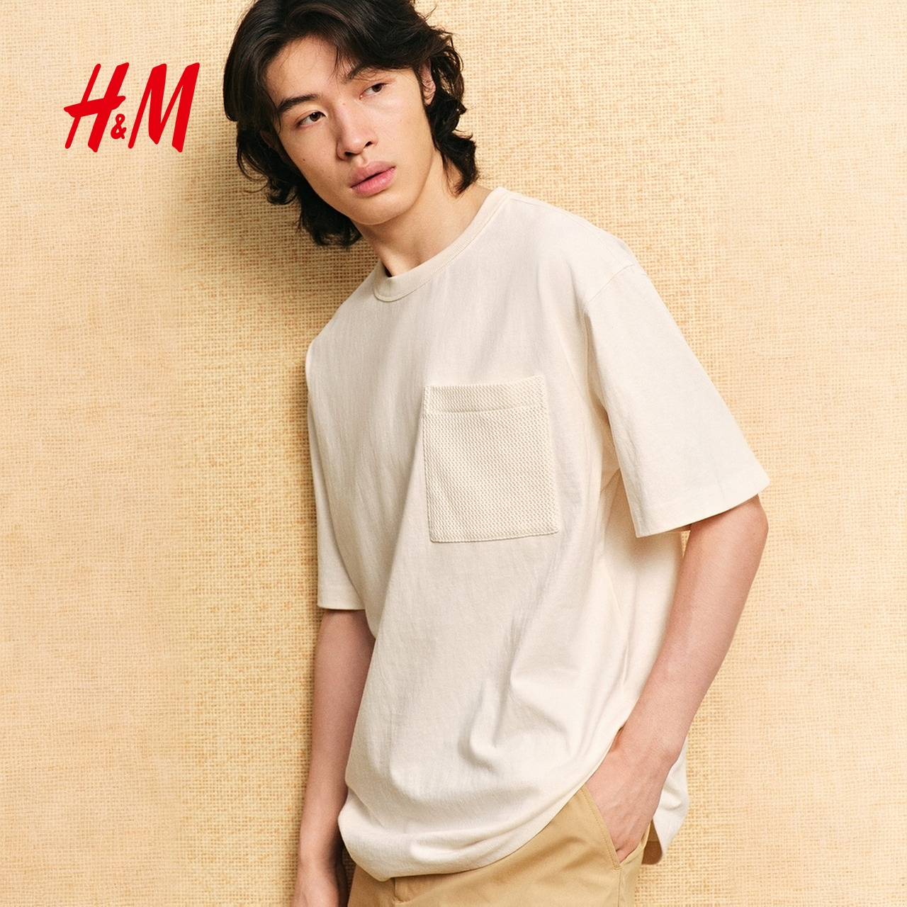重磅棉质箱型宽松口袋短袖 HM男装 新款 T恤2025秋季 上衣1288867 女装