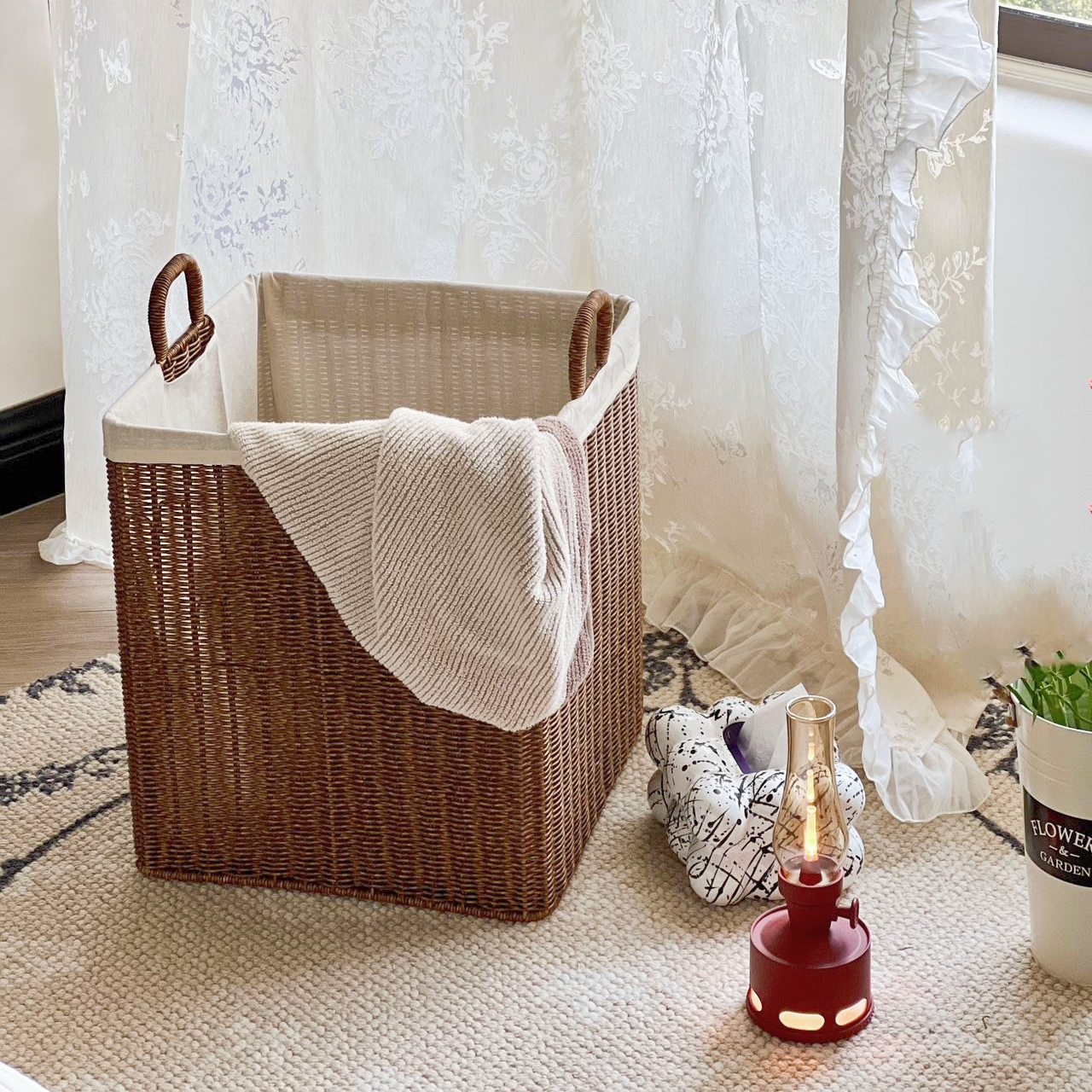 美式 脏衣篓家用脏衣篮仿藤编脏衣服收纳筐洗衣篮高级感复古脏衣筐