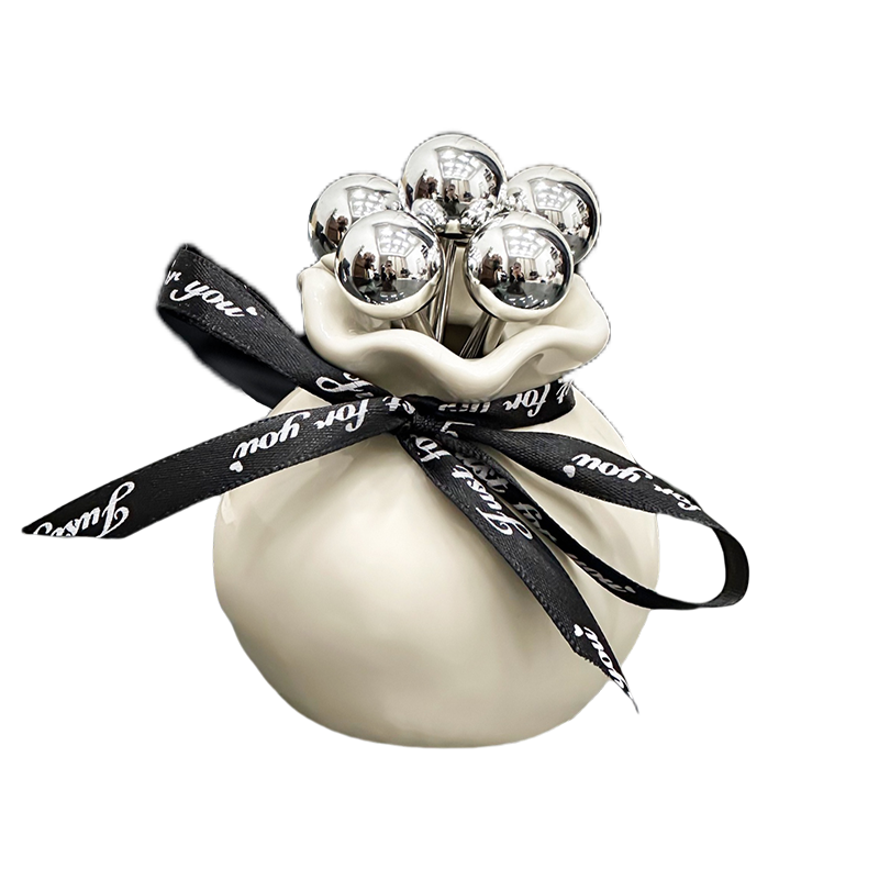 不锈钢水果叉家用陶瓷甜品叉子收纳罐高级感水果签叉子套装 新款