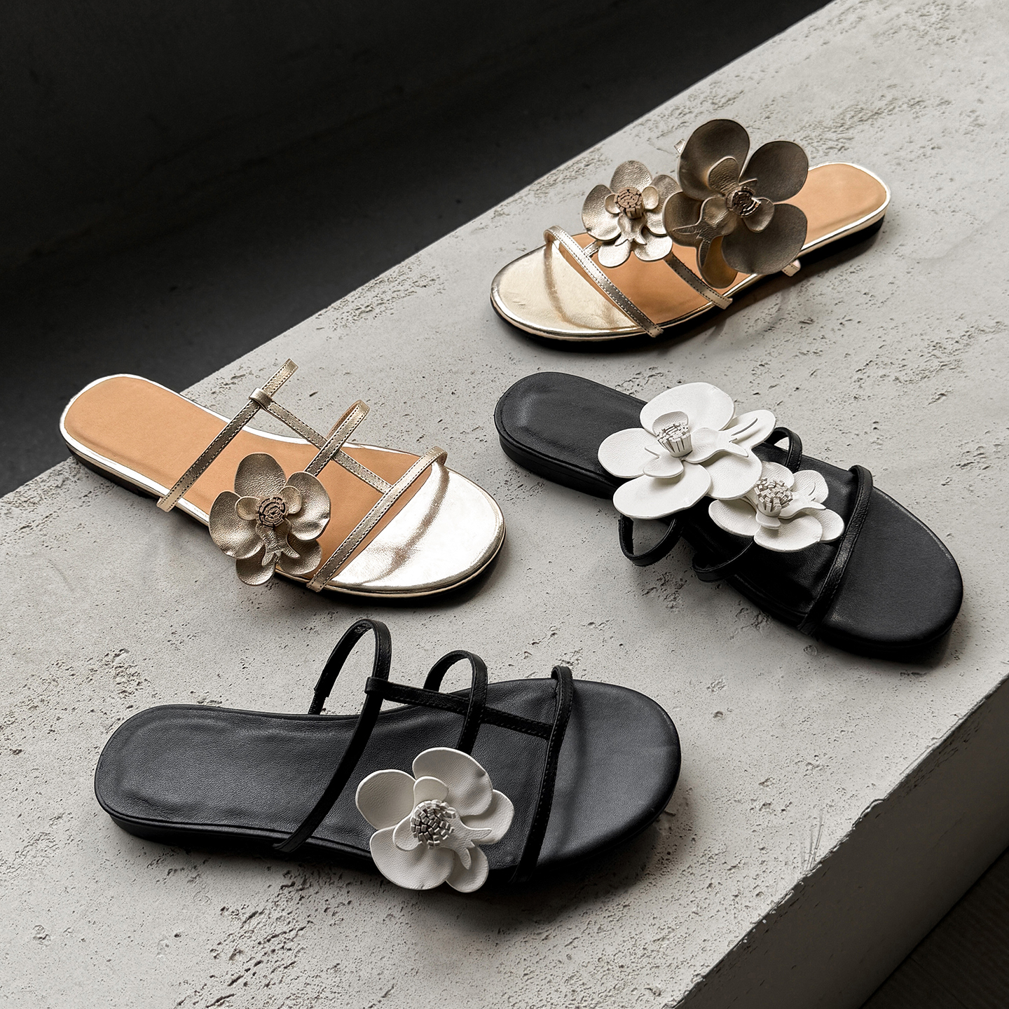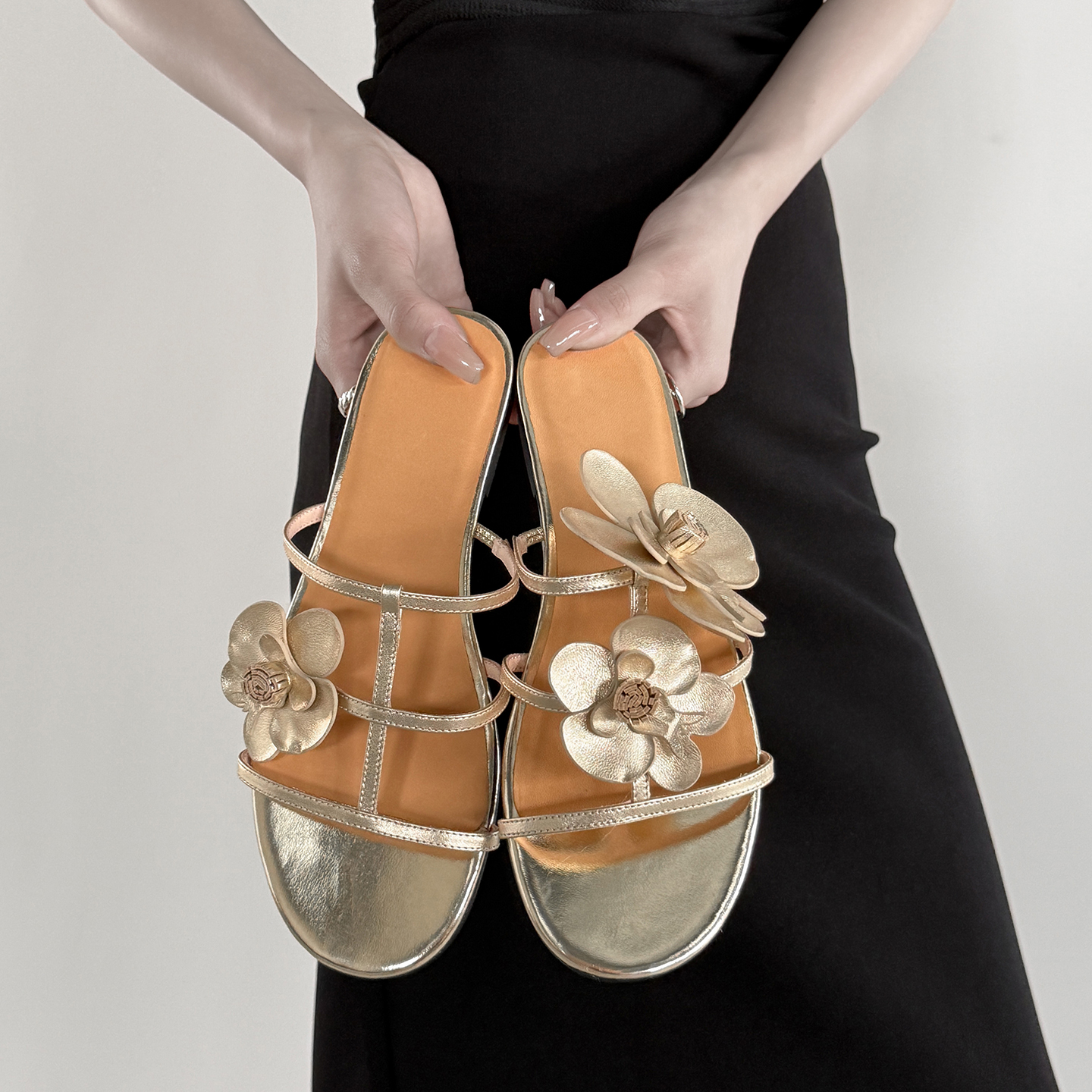 仙女风外穿凉拖鞋 露趾花朵凉鞋 女新款 休闲平底鞋 夏季 开怀依足法式