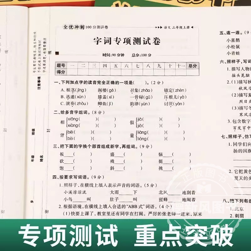 全优冲刺100分模拟测试卷小学一二三四五六年级上下册语文数学英语人教版 模拟卷期末冲刺100分专项试卷 同步测试卷全套单元