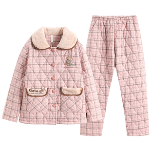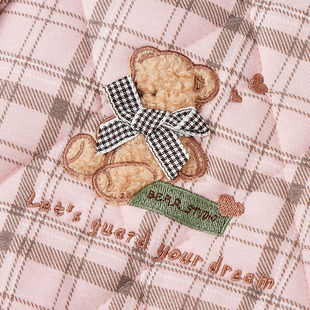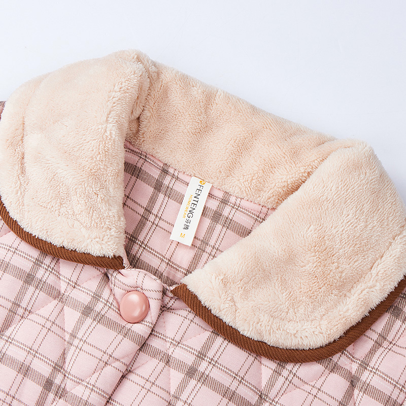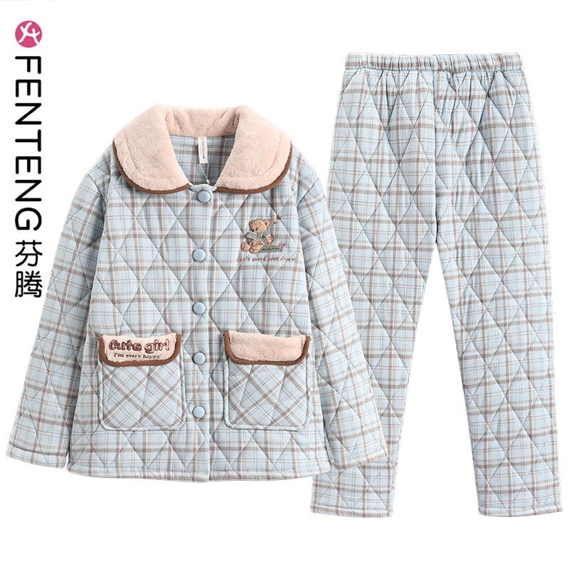 芬腾秋冬季 女士睡衣纯棉加厚格子全棉薄夹棉甜美可爱高级感家居服