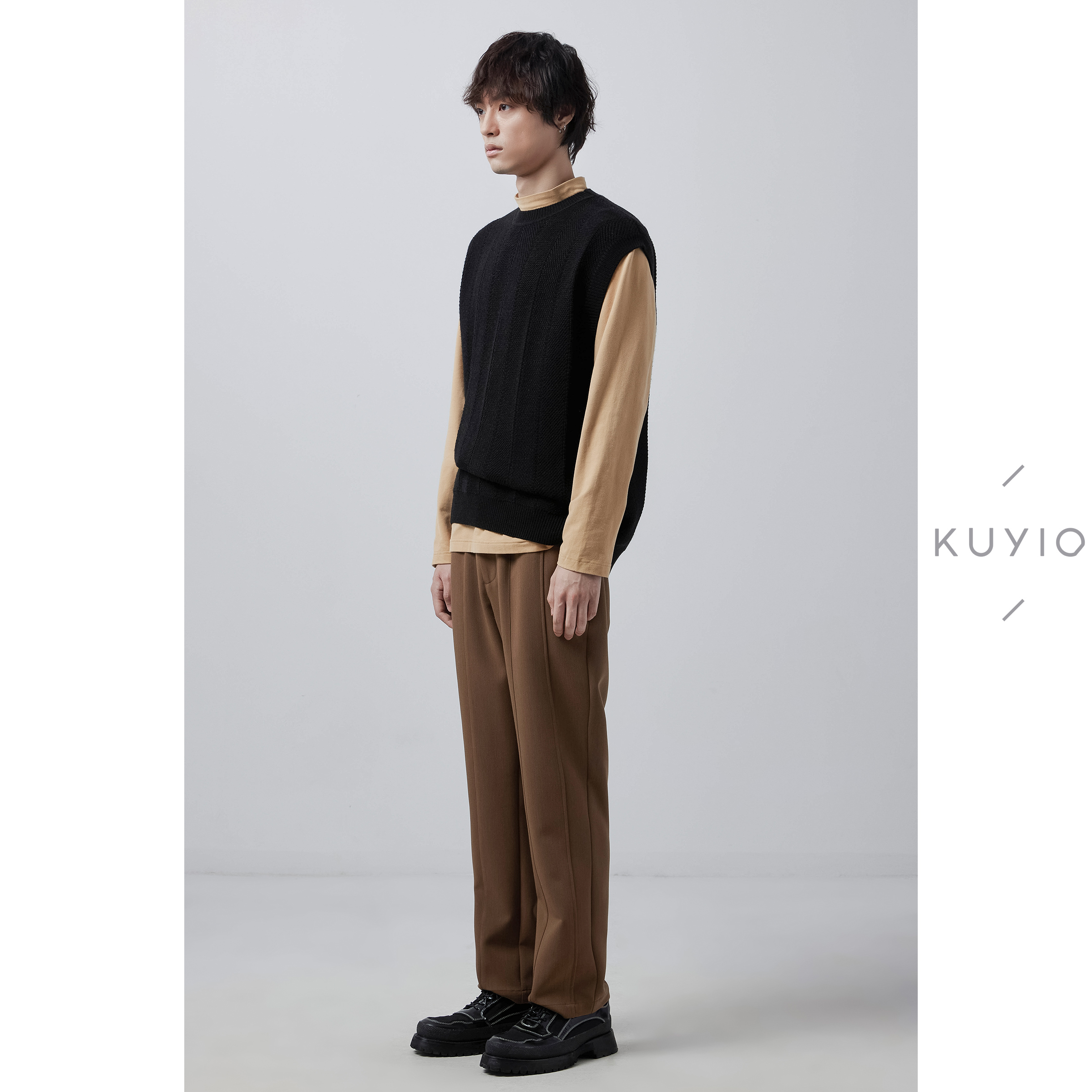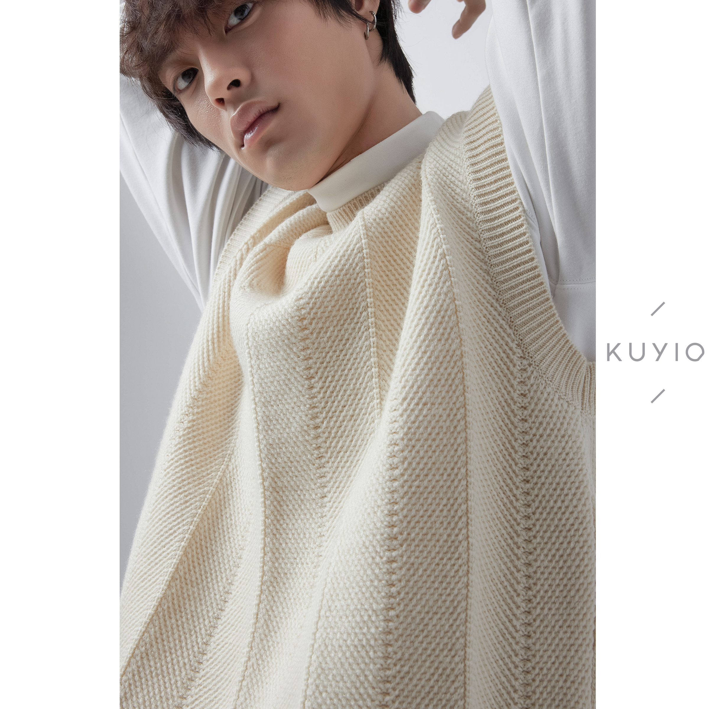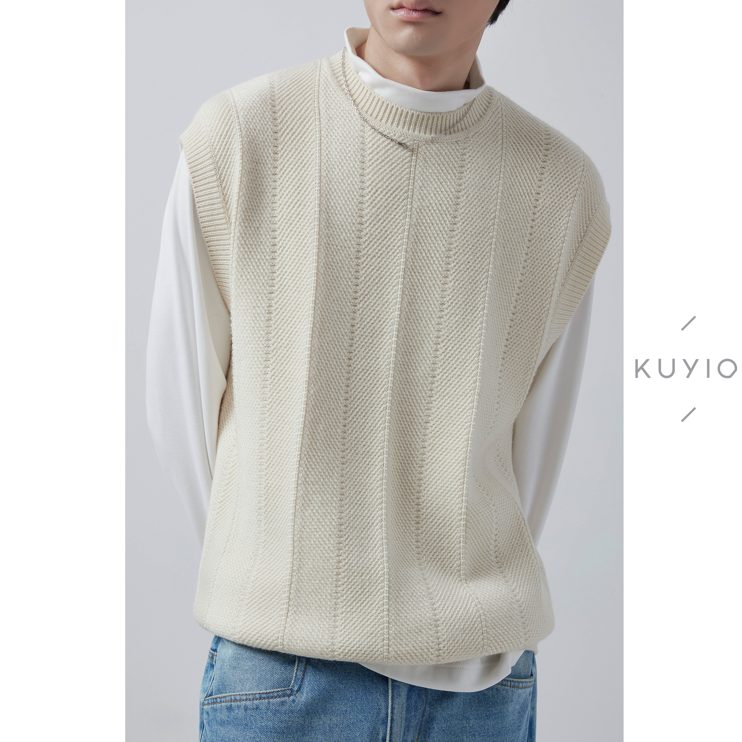 KUYIOU 羊毛混纺宽松圆领极简复古针织马甲男B03 宽间鱼骨纹肌理