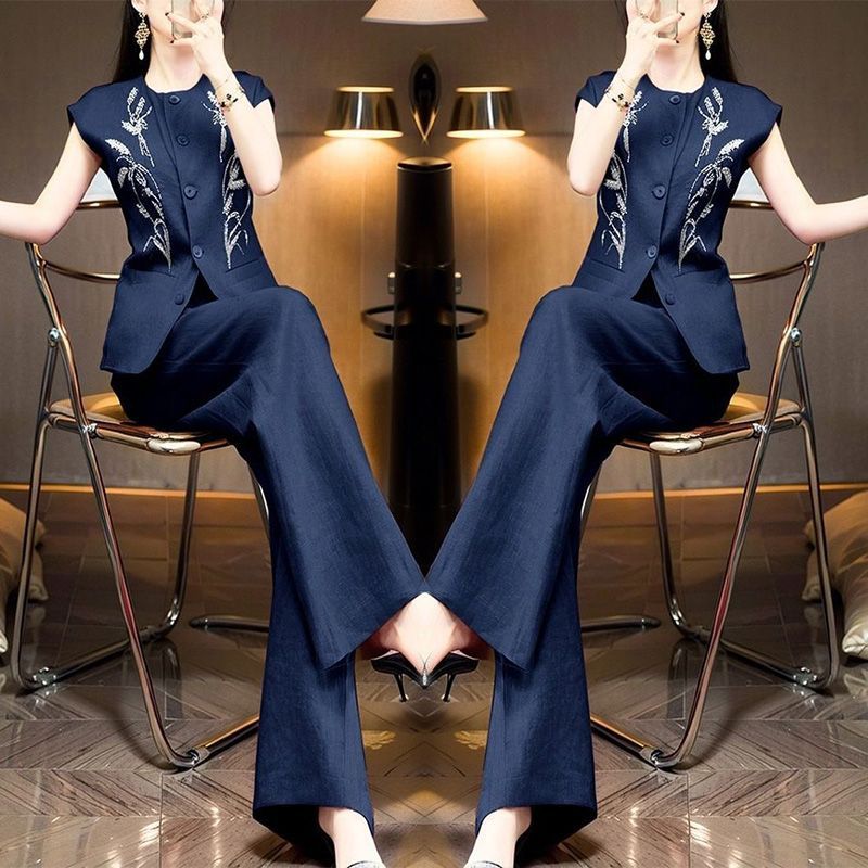 女潮 两件套装 高级气质休闲夏季 成熟御姐高级感重工绣花马甲阔腿裤