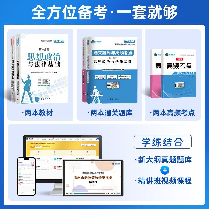 未来教育2025演出经纪人资格考试教材真题试卷全国市场政策与经纪实务思想政治法律基础科目一科二书艺人考试资料书含题库视频课程