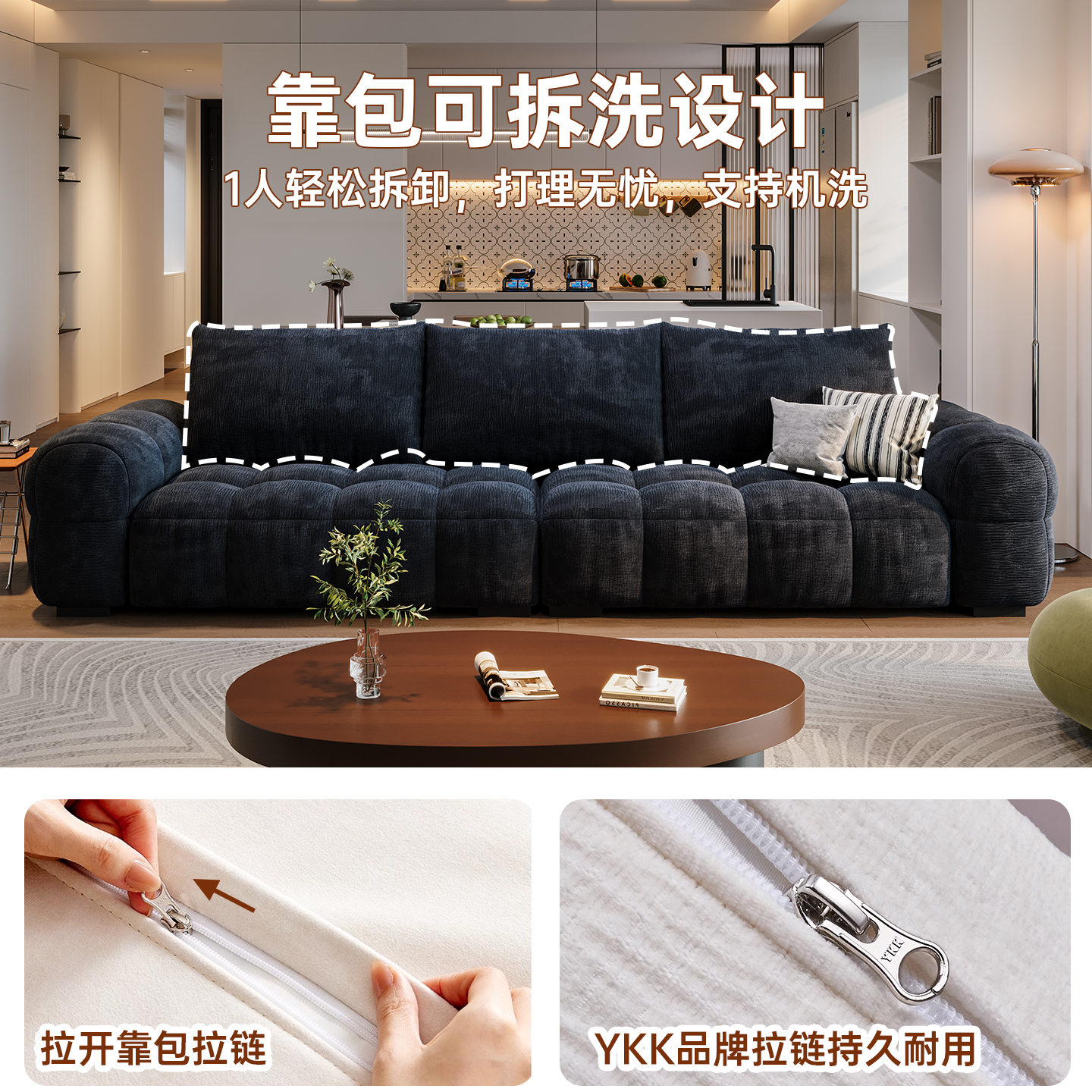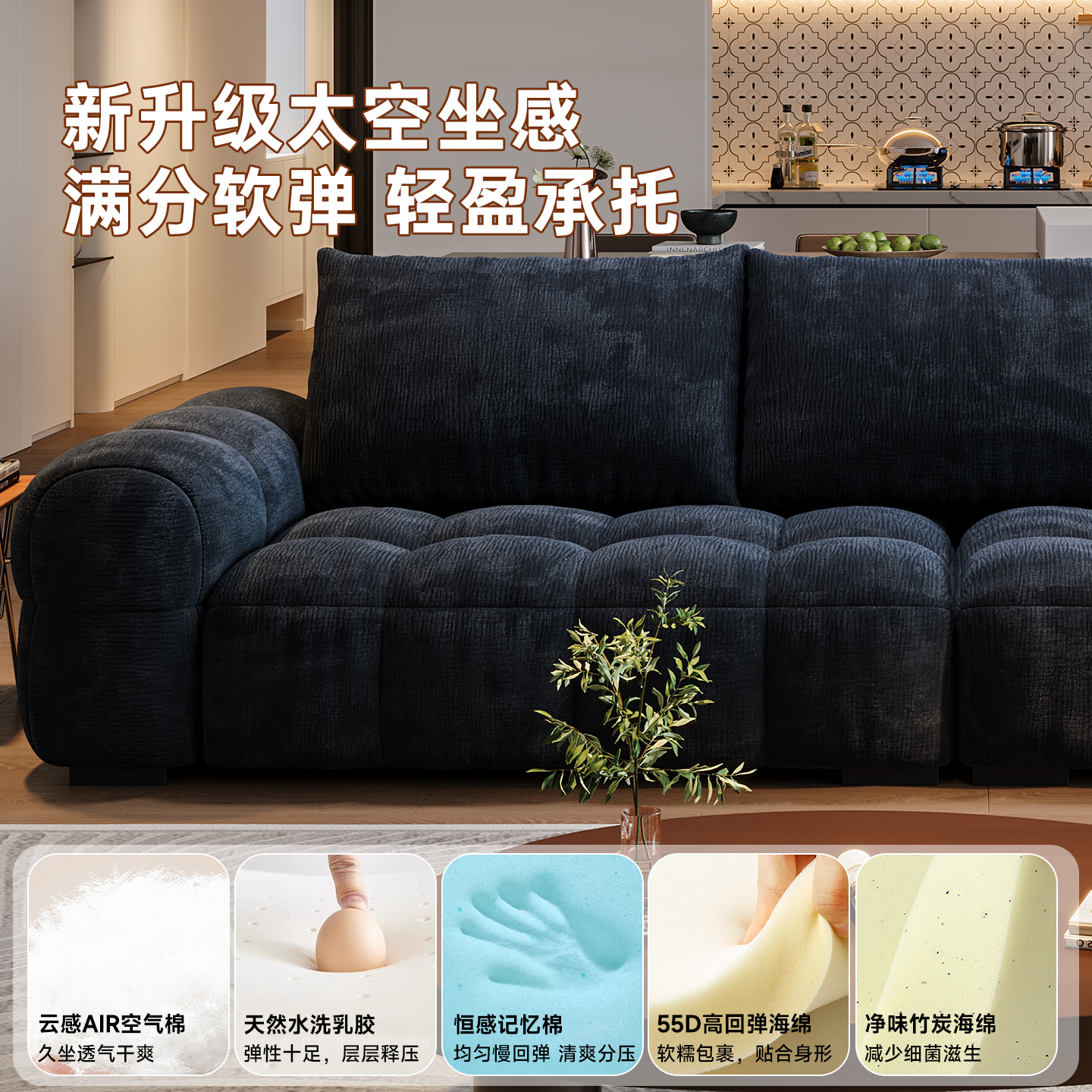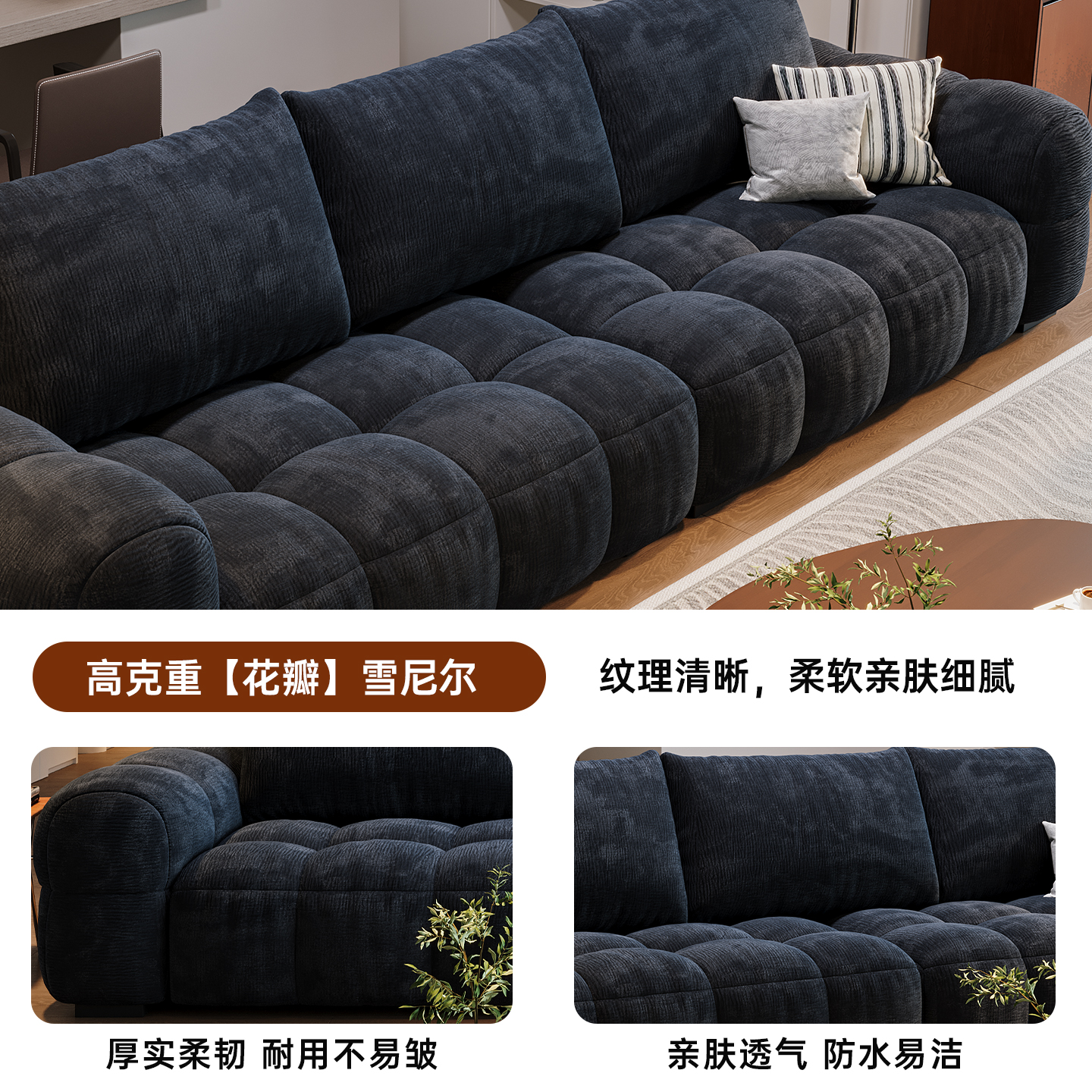 瑞雪布艺沙发现代简约小户型客厅中古风棉花糖云朵雪尼尔泡芙沙发