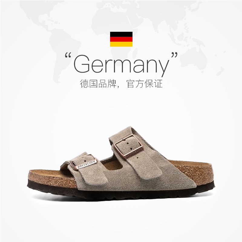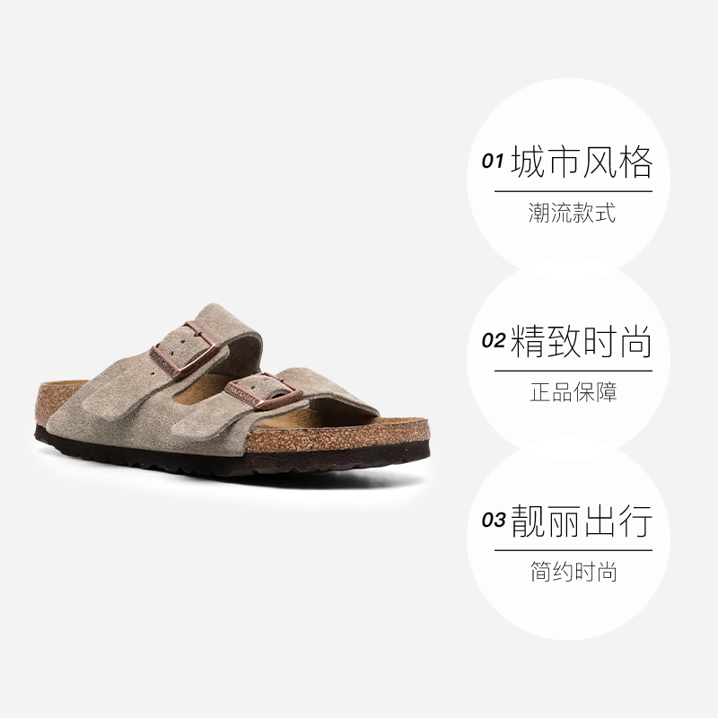 休闲百搭 Birkenstock绒面 时尚 凉拖 灰褐色951303 女款 自营