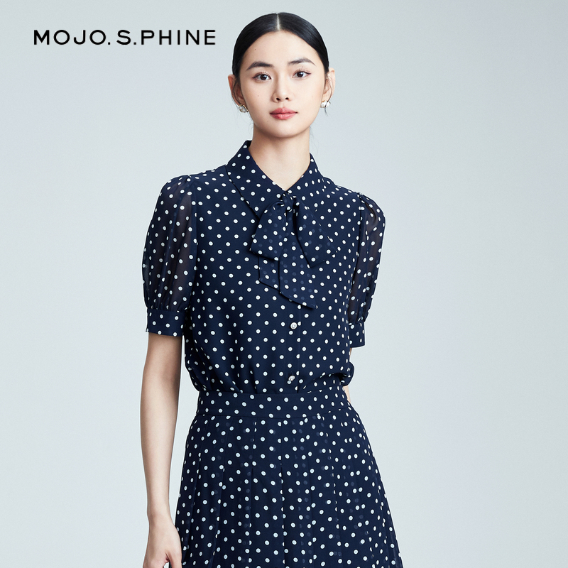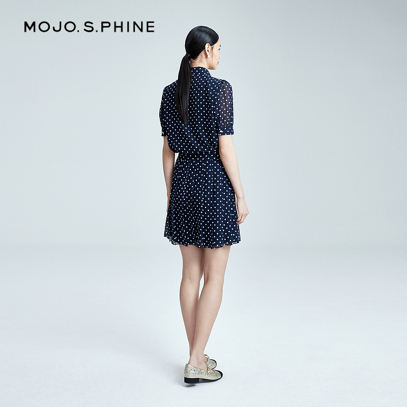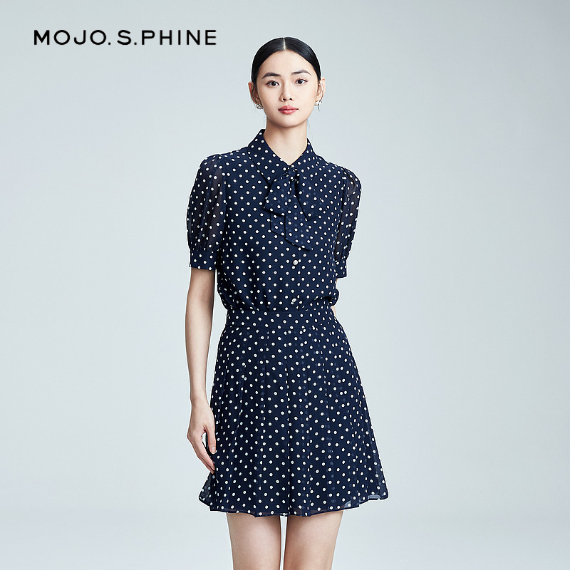 静谧海军蓝时尚 半身裙2024年新款 休闲百长裙 印花套装 MOJO莫佐法式