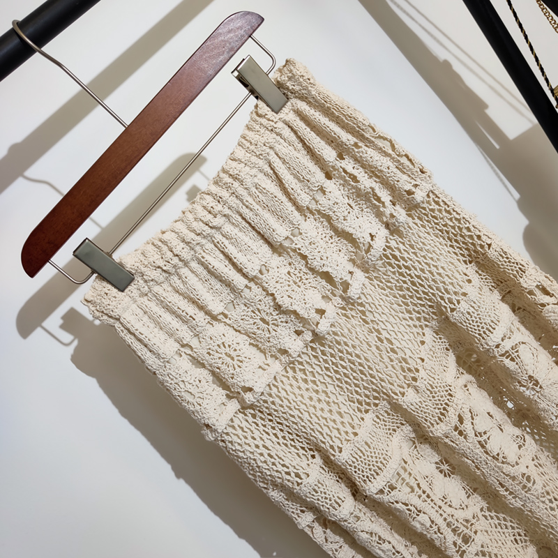 裙子外穿 重工勾花镂空中长款 波西米亚度假风针织半身裙女夏季 新款
