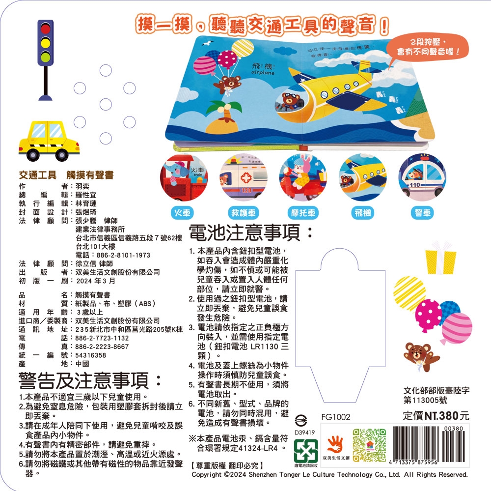 交通工具 双美生活文创 触摸有声书 10种音效 羽奕 含5个触摸 预售