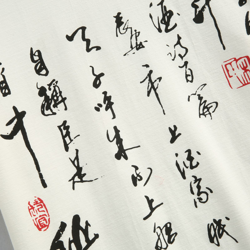 中国风复古棉麻短袖 夏季 清仓 T恤男国潮印花圆领棉polo衫 断码