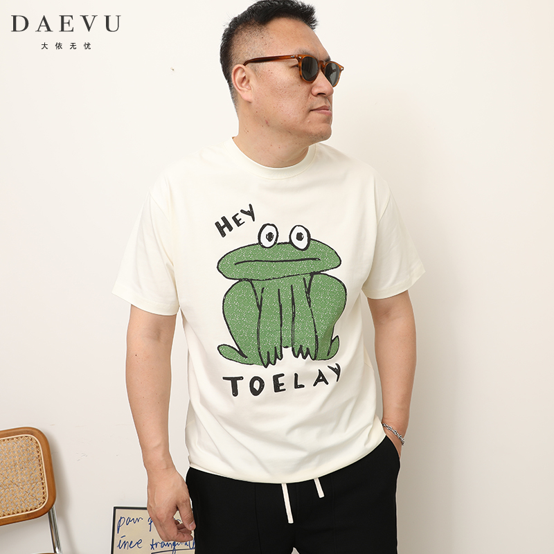 短袖 大依无忧夏季 卡通青蛙潮胖子加肥加大圆领男士 男装 t恤 大码