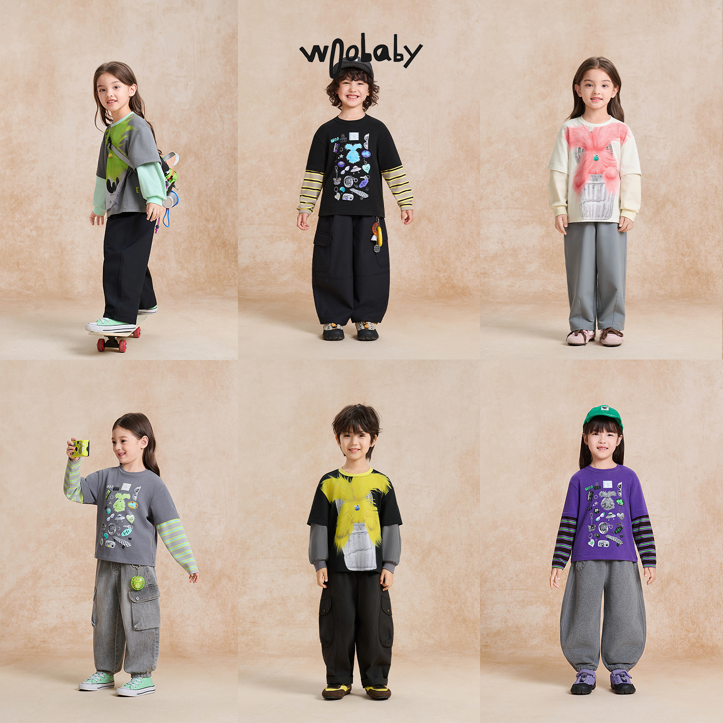 毛怪T恤25秋3A抗菌防螨亲子假两件打底 woobaby儿童长袖 力安同款