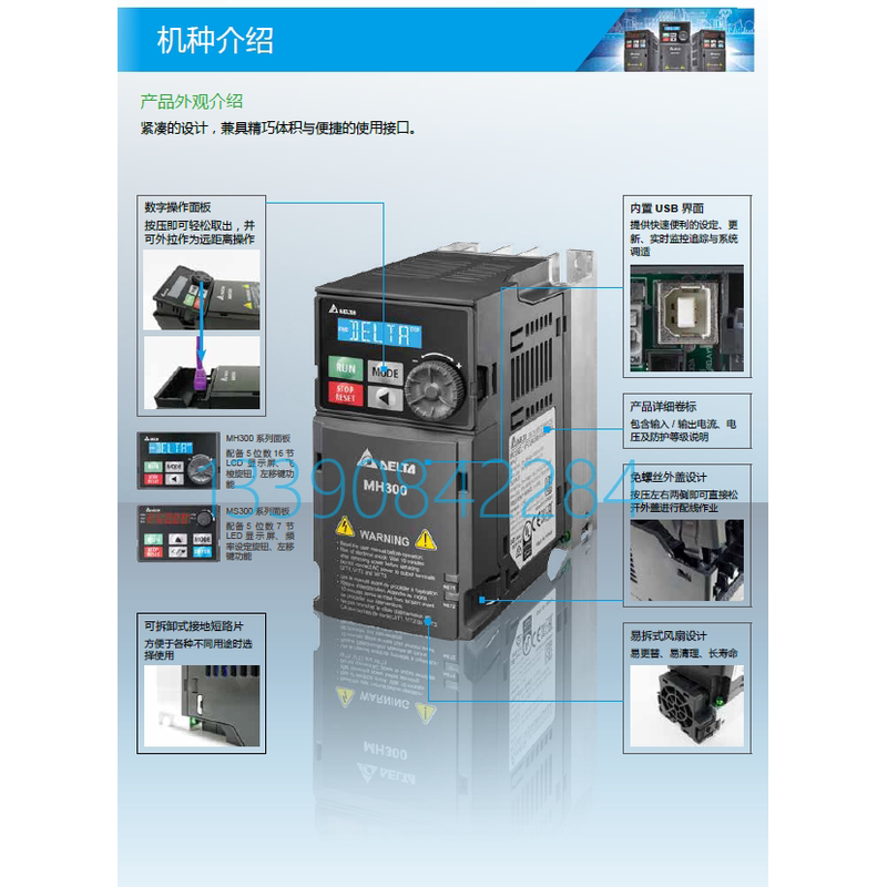 台达变频器 台达单相220V VFD4A8MS21ANSAA 台达MS300系列750W