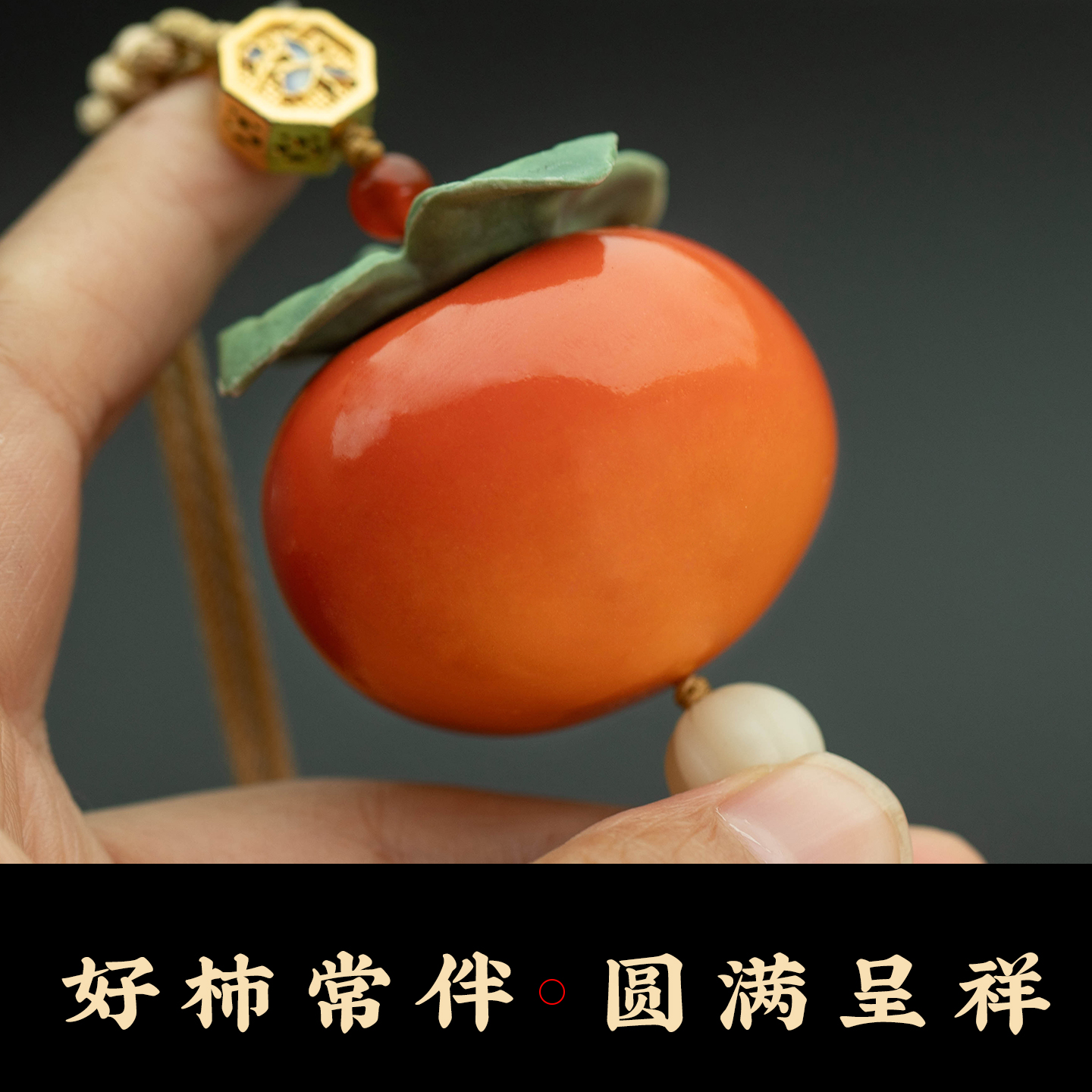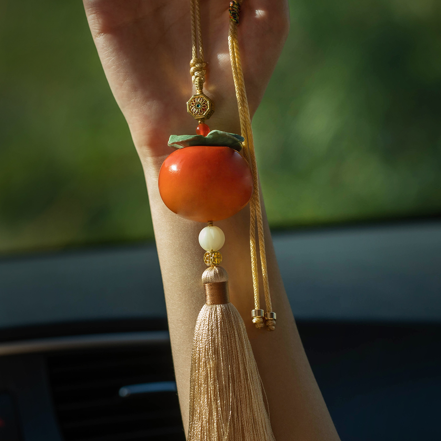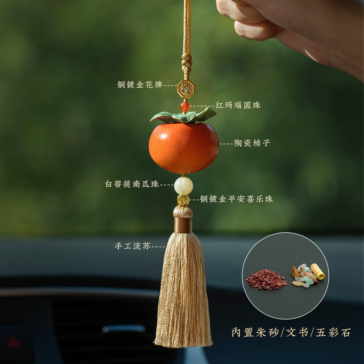 新款 饰品 陶瓷柿子车载挂件原创柿柿平安汽车挂饰手工流苏车挂装