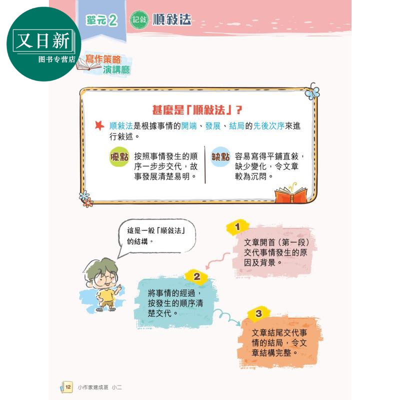 港台原版 2025年版 香港教育图书 小学生写作 又日新 小作家速成班 叙述文描绘文抒情文说明文议论文实用文体范文 小二