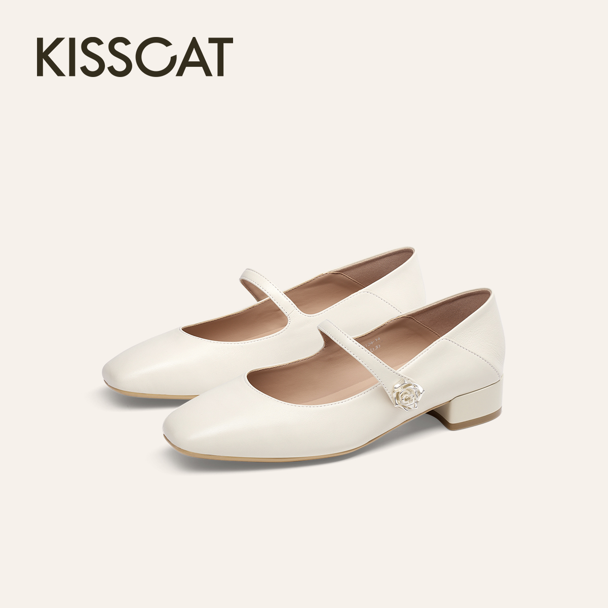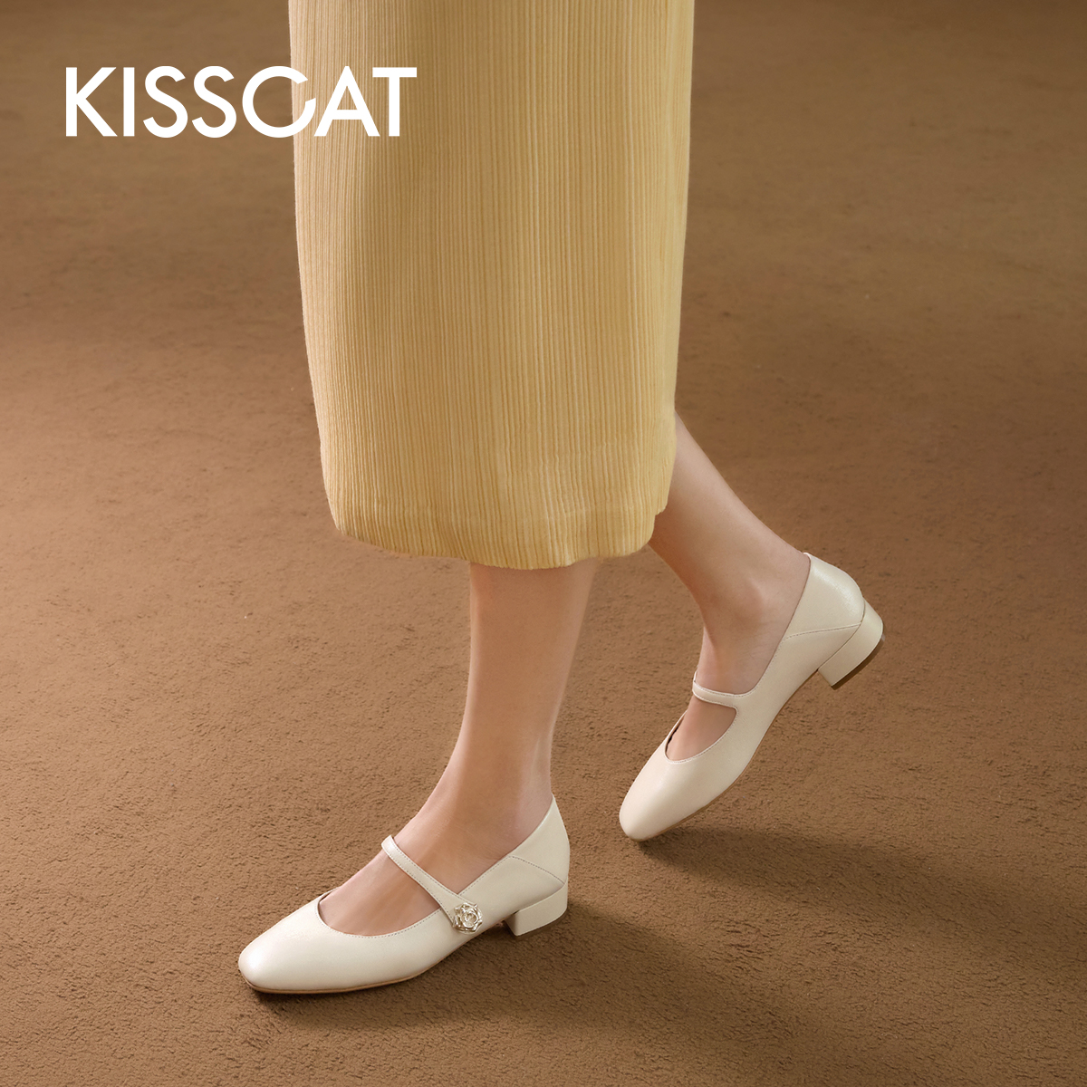 羊皮玛丽珍浅口女红色单鞋 百思图莫奈花园25秋新款 叶一茜同款