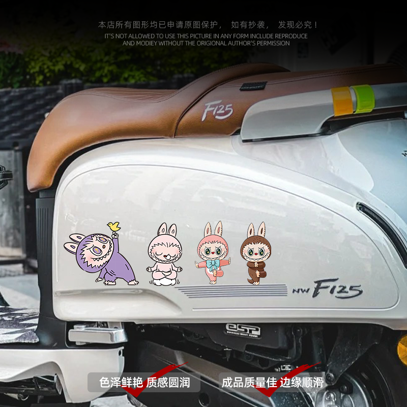 适用于汽车车窗装 饰贴纸卡通可爱电动摩托车车身划痕遮挡贴