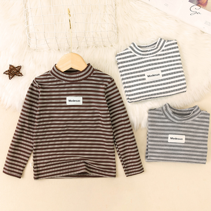 儿童秋衣内搭早秋装 男宝宝条纹打底衫 T恤春秋冬季 男童半高领长袖