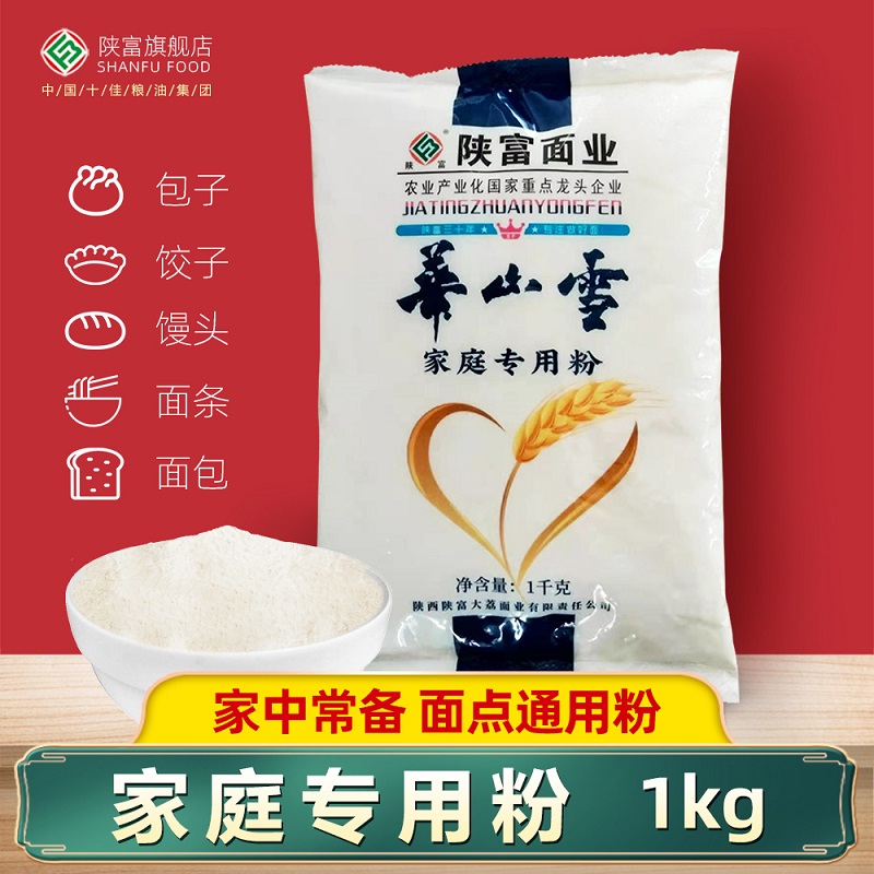 陕富多用途麦芯粉2斤家庭小麦面粉包子饺子馒头面条家用中筋面粉